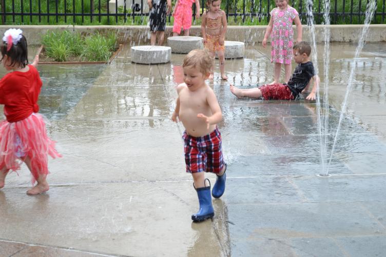 A spray park at the Rec Center, which opened May 2013, provides another fun kid-oriented outdoor activity at the Big Green Block, just in time for the summer heat! This “sprayground” incorporates embedded planters with pervious surface to absorb some of that spray.